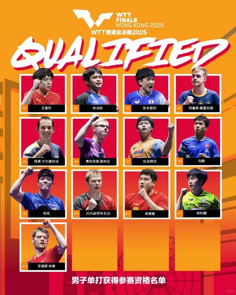 - 参赛资格: 根据2025赛季WTT世界排名(积分截止日期通常在11月底或12月初)前16名的男女单打选手获得参赛资格。这意味着只有整个赛季表现最稳定、最出色的球员才能入围。