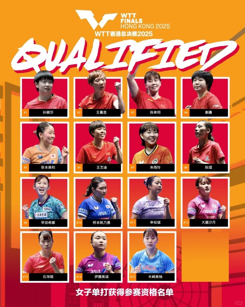 - 中国军团: 孙颖莎、王曼昱、王艺迪、陈梦、蒯曼等。