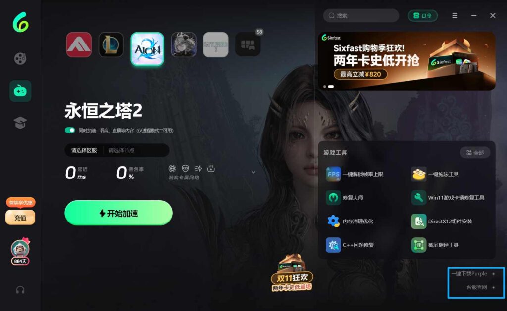 这些问题并非个例,而是海外玩家游玩台服国际服的共性痛点。此时,一款针对性的专业加速器成为刚需,而 Sixfast 加速器凭借对《永恒之塔 2》的深度适配,成为海外玩家的首选解决方案。​