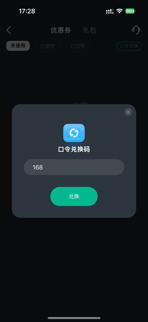 點擊進入後,選擇右側卡券兌換,填入兌換碼【168】
