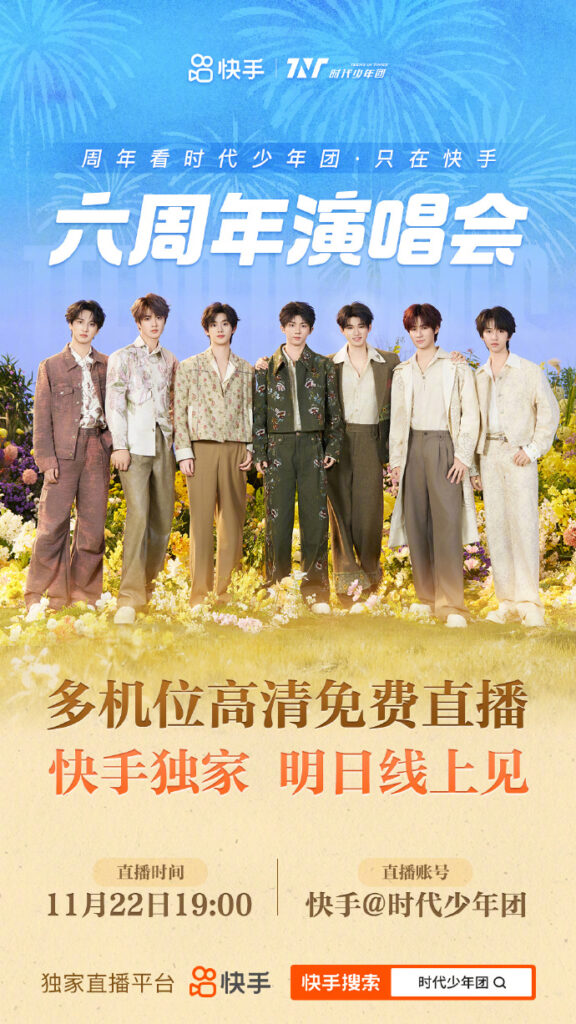 - 11月22日晚19:00,快手将开启多机位直播,粉丝可自由切换不同成员的直拍画面,捕捉少年们的舞台表现。