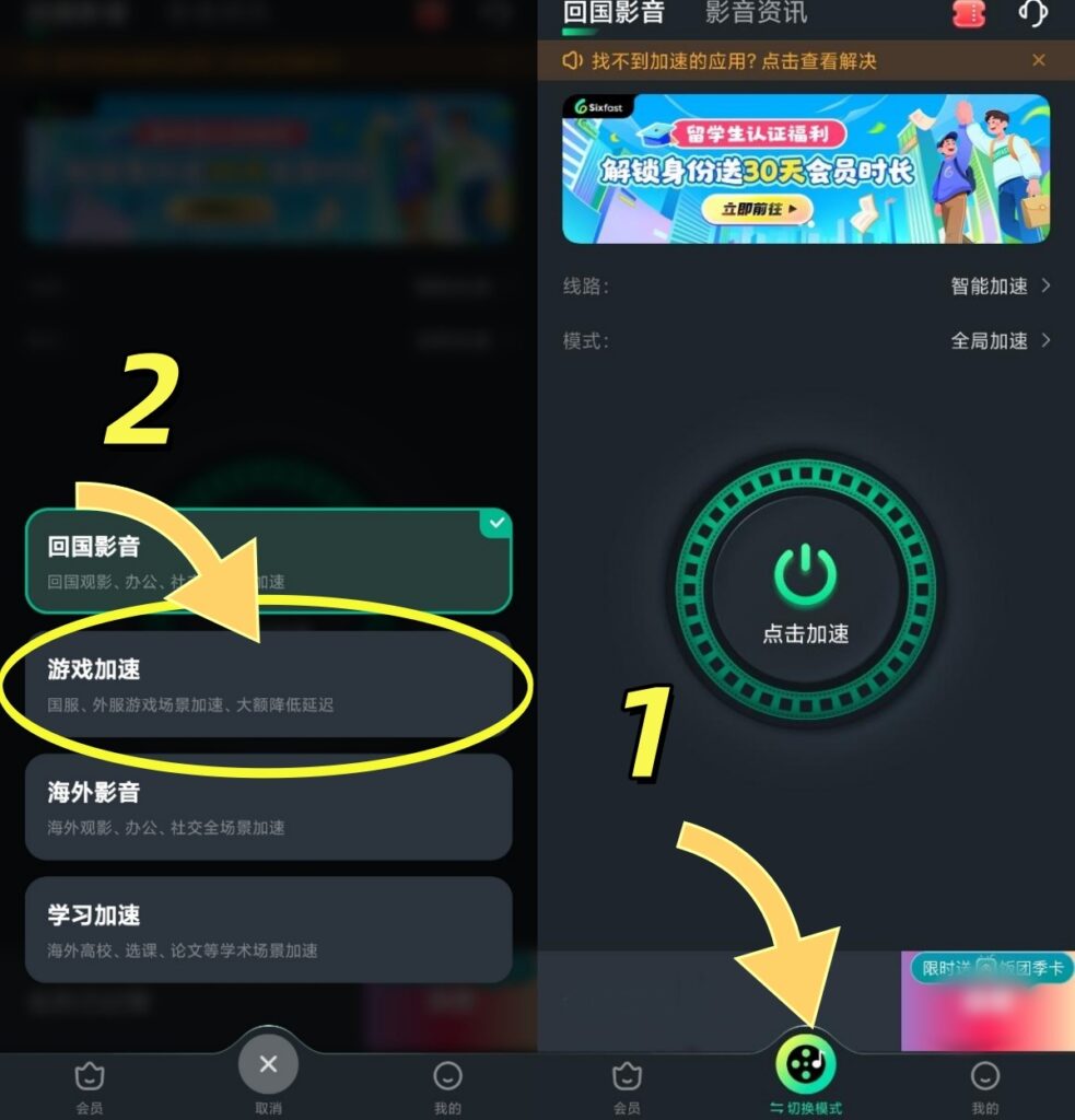 ②兑换完之后,才可以到下方【切换模式】,找到【游戏加速】,点击加速