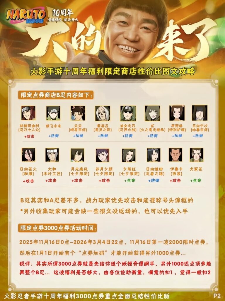 游戏内已开启多项十周年限定活动,包括免费领取S级忍者、十周年限定时装、大量金币和招募券等重磅福利。决斗场等玩法也推出了纪念性内容。