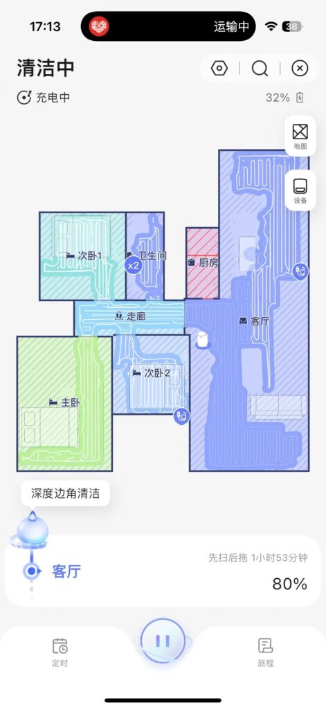 - 实时监控:清洁路径、剩余电量、完成进度直观显示,甚至能看到机器人当前位置;