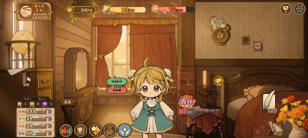 游戏背景设定在炼金术与骑士精神并存的奇幻火山国,玩家将扮演一位独自抚养女儿罗丝的单亲父亲,从 5 岁到 18 岁全程参与她的成长。不同于传统养成游戏的数值碾压,本作更注重 “陪伴感”—— 你可以安排她修习骑士剑术、探索神秘学占卜,也能让她专注耕种烹饪、发展艺术天赋,甚至只是带着她钓鱼、参加飞镖小游戏提升魅力值。多达 62 种结局涵盖 12 种婚恋方向和 50 个职业专属路径,从英勇骑士、皇家学者到平凡的餐厅服务生,每一个选择都将导向独一无二的人生篇章,正如游戏制作人所说:”这里没有正确答案,只有最贴合你心意的成长轨迹”。​