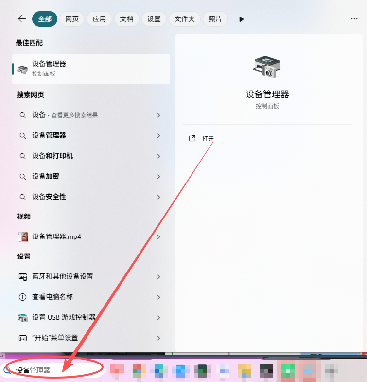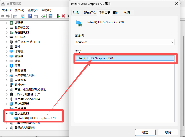 如果不清楚路径 → 在左下角直接搜索【设备管理器】 → 找到显卡 → 属性 → 详细信息→然后复制型号。