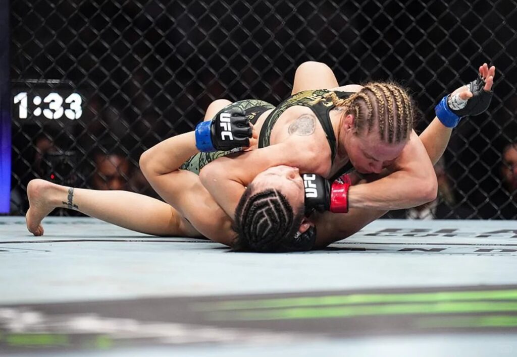 【女子草量级】巴西名将阿曼达·莱莫斯(15-5-1,8KO,3降服)将对阵加拿大女将吉莲·罗伯逊(16-8,3KO,9降服)。莱莫斯排名女子草量级第五,拥有极强的终结能力,8场KO胜利彰显其站立打击优势;而罗伯逊则是地面技术的佼佼者,9场降服胜利让她成为女子赛场的“绞杀女王”,这场“打击vs降服”的对决必将精彩纷呈。