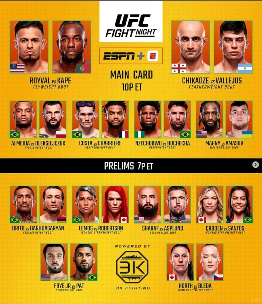 值得一提的是,本次赛事的重量级对决 “肯尼迪・恩泽楚库 vs 马库斯・阿尔梅达” 可能成为冷门温床。阿尔梅达作为柔术界传奇人物,UFC 战绩虽仅 2 胜 1 负,但降服率高达 100%,其地面技术对站立系选手恩泽楚库构成极大威胁。中文解说团队将重点解析阿尔梅达的 “膝十字固” 技术细节,这也是海外拳迷选择中文直播的核心原因之一。