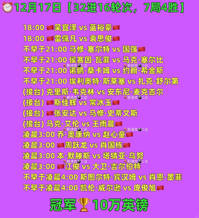 赛程解读:赵心童凌晨出战,多场强强对话定晋级格局