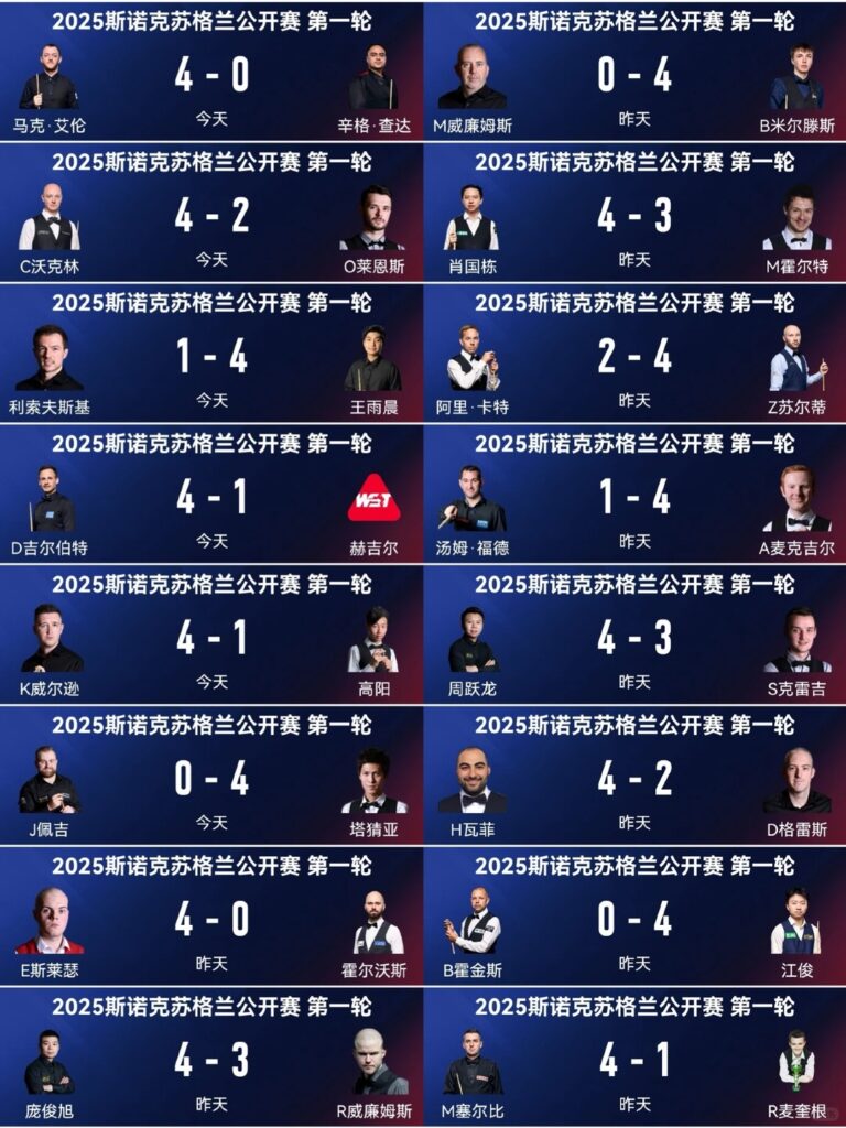 本届苏格兰公开赛,中国斯诺克交出了堪称完美的首轮答卷。经过两个比赛日的鏖战,17名出战正赛的中国选手最终14人成功突围,仅高阳、范争一、刘宏宇三人遗憾出局,这一数字不仅打破了中国斯诺克单站排名赛32强晋级人数纪录,更成为斯诺克历史上单一国家在该阶段的最大规模集结。从新秀到名将,中国军团展现出“老中青”梯队的全面崛起态势,让爱丁堡赛场处处可见中式身影。