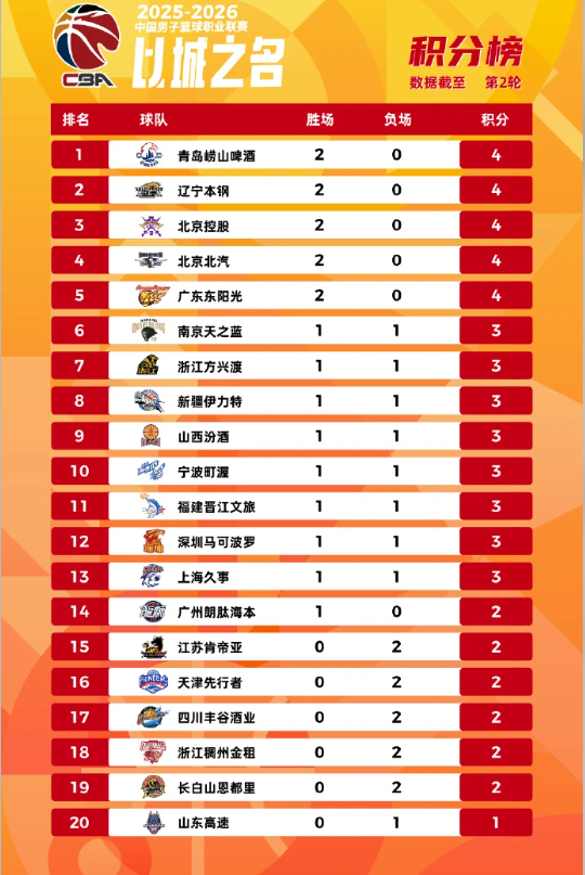 传统豪门的开局则充满波折。广东东阳光在两场硬仗中展现出冠军底蕴,先是加时险胜南京同曦,又在客场以101-98绝杀浙江稠州,送对手赛季首个主场败局的同时,也凭借2胜0负的战绩稳居前列。而卫冕冠军浙江广厦揭幕战大胜山西后,在与辽宁的强强对话中未能延续胜势,暂时退出榜首之争。最让人意外的是上海久事,手握豪华内线组合却在客场被同曦一顿快攻打懵,爆冷输球后战绩跌至中游,赛季初的夺冠呼声瞬间降温。