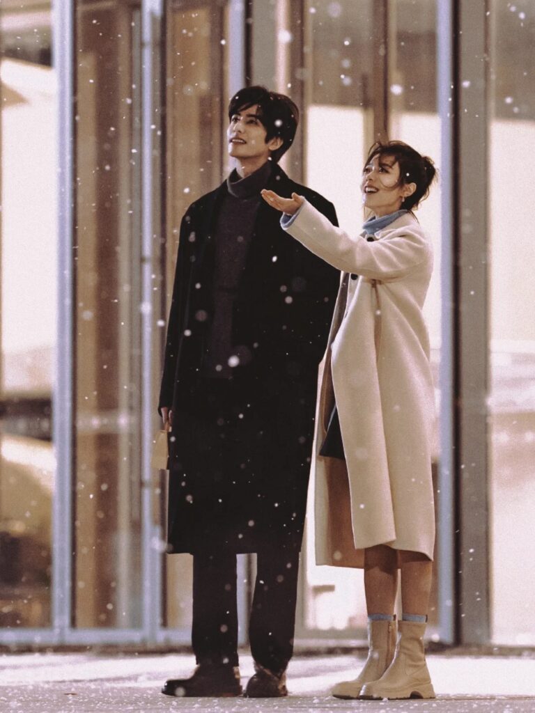 更绝的是两人20cm的身高差,海报中宋威龙指尖轻轻掸掉赵今麦肩头落雪,她仰头时刚好对上他含情的眼眸,雪花落在两人发梢,连原著里“伞下额头吻”的名场面雏形都藏在朦胧光影里。从片场路透的雪地牵手漫步,到官方放出的环抱吻花絮,每一个互动都甜到齁,“温差CP”超话一个月就涨粉50多万,网友直呼“这就是从书里走出来的林屿森和聂曦光”。