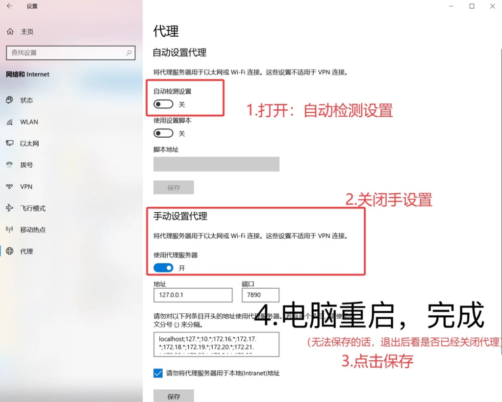 - 关闭其他代理选项