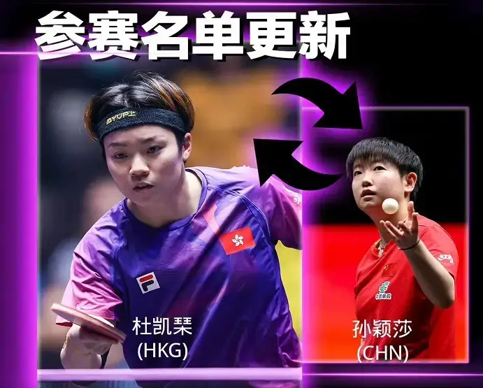 WTT官方发布公告,确认国乒女队主力孙颖莎退出2026年1月7日至11日举行的WTT多哈冠军赛,其参赛资格由中国香港选手杜凯琹递补