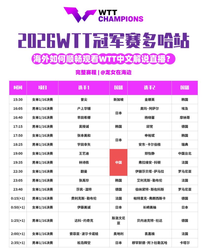 以下是WTT多哈冠军赛的详细赛程,记得按时锁定直播,精彩对决不容错过!