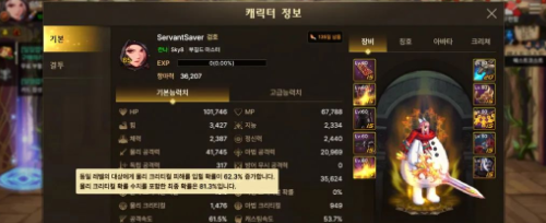 暴击值:攻击同等级的65级怪物时,每23点暴击值提升1%的暴击率,如果怪物等级比你低,那么你可能每20暴击值就提升1%暴击率,换句话说就是怪物等级比你越低,你的暴击率就越高,怪物等级比你高你的暴击率就越低