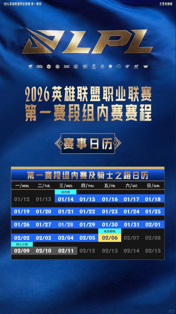 一、2026LPL第一赛段常规赛组内赛赛程正式公布!