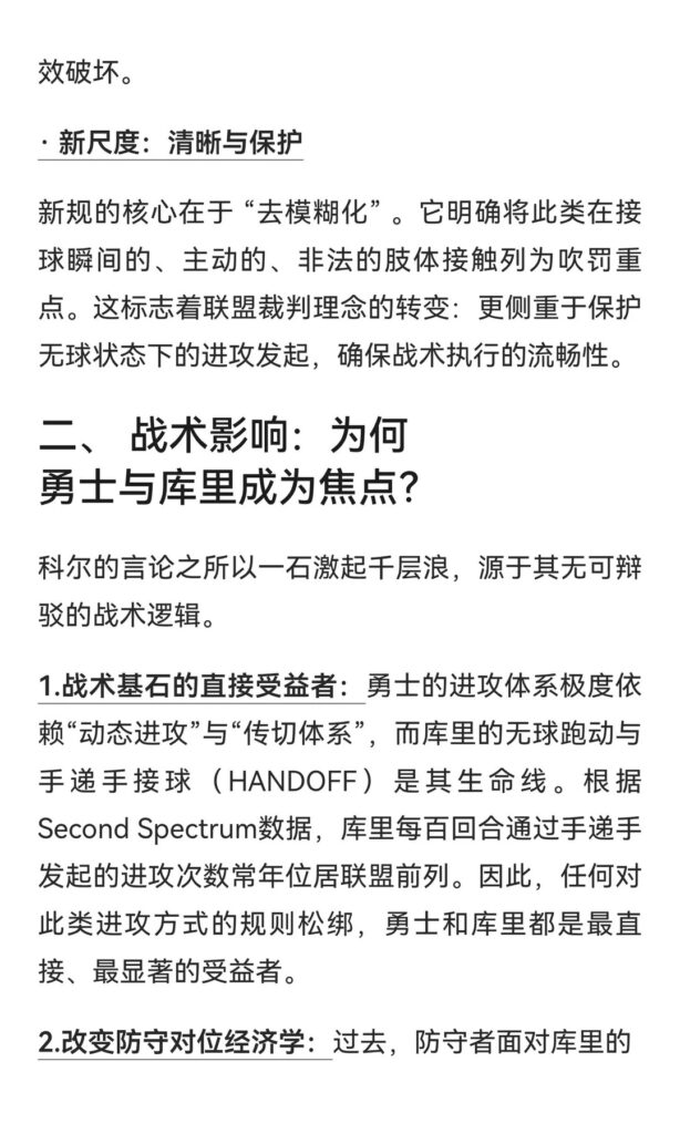• 禁止投篮后热炉接触,库里等外线投手获得更充分的保护,联盟整体罚球次数有所增加。