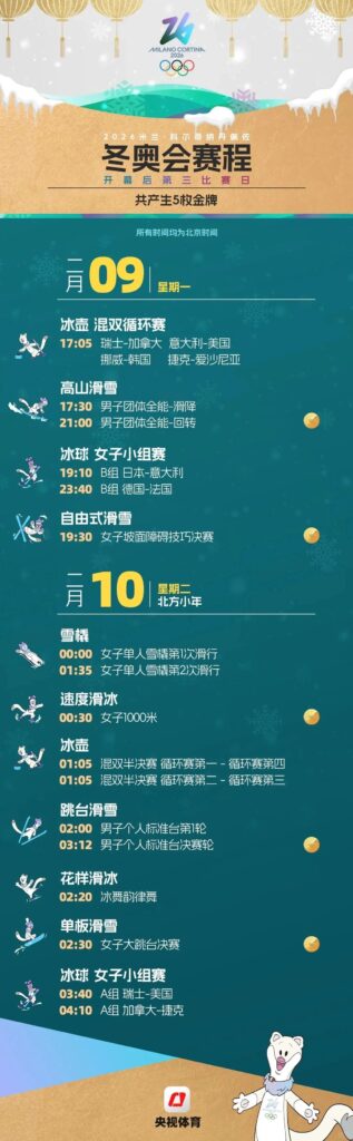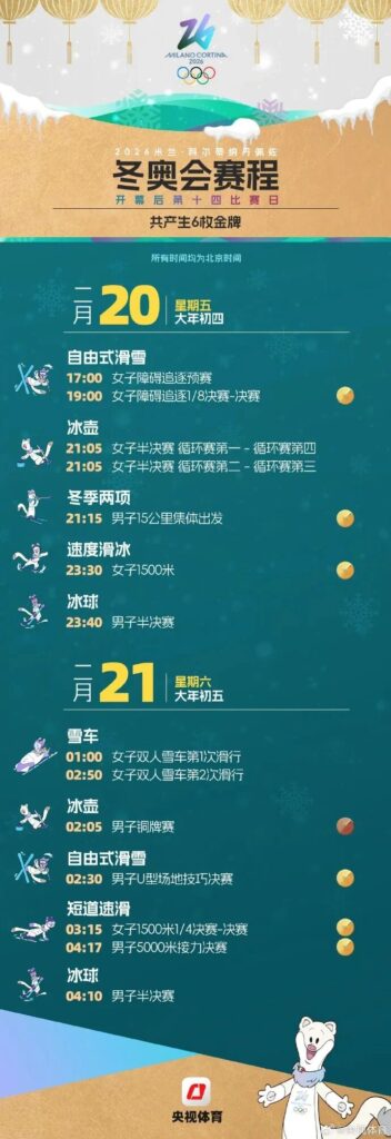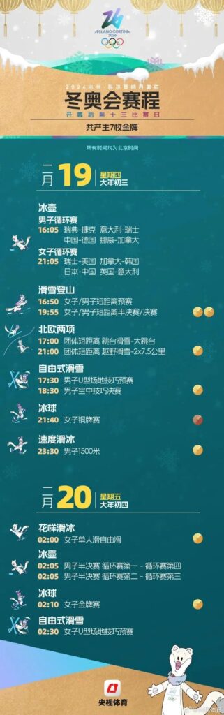 二、米兰冬奥会重点赛程!