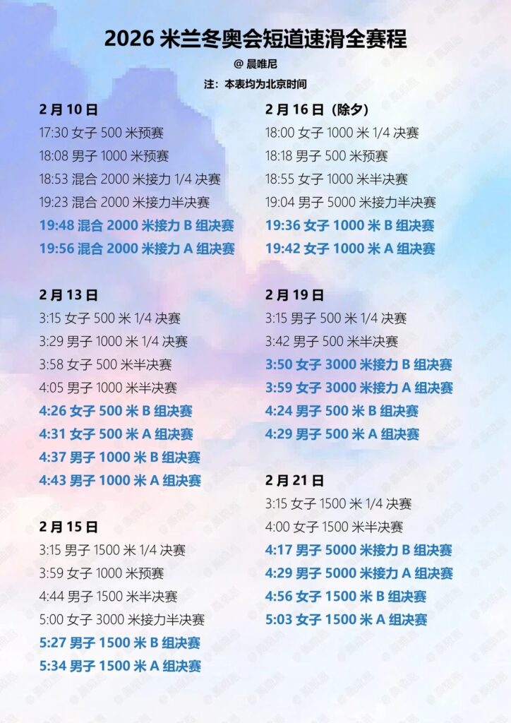 二.米兰冬奥会赛程公布