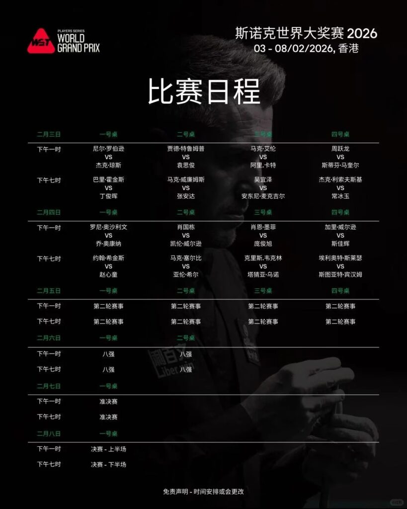 海外党该怎么看世界桌球大奖赛中文解说? 2026-02-01 14 微信扫一扫,分享到朋友圈 0 2月3日-8日 香港世界大奖赛 直播平台:咪咕、央视频 本次赛事共有10名中国球员出战 赵心童也直接放话: 希望八强、四强都是中国球员! 除赵心童、丁俊晖,还有罗尼·奥沙利文、贾徳·特鲁姆普、凯伦·威尔逊、约翰·希金斯、马克·威廉姆斯以及卫冕冠军尼尔·罗伯逊登场,群星汇聚。 五星红旗曾在世锦赛舞台飘扬,下一次,就让它在大湾区主场再次燃起 我们一起为中国斯诺克呐喊! 下面是赛程赛事 海外怎么看世界桌球大奖赛中文解说? 可以试试图四的方法,有机会拿三天的时长哦!