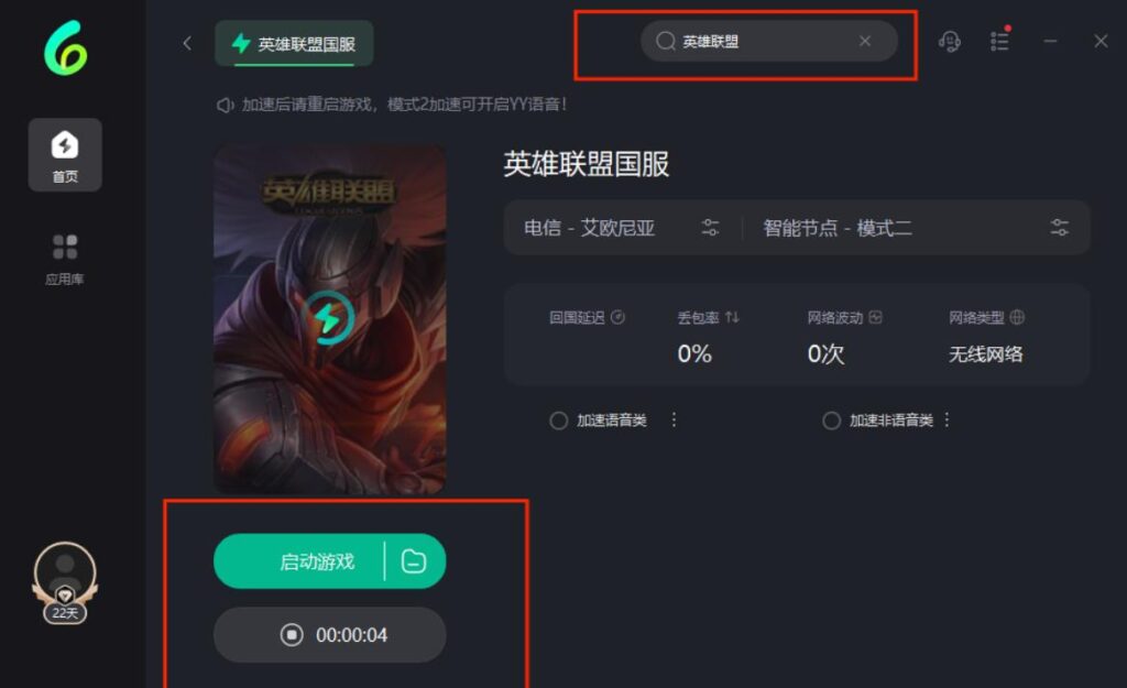 加速成功后即可启动游戏,如果没有效果,那是因为在加速前游戏就已经在运行了,所以只需要把英雄联盟国服从后台彻底关闭后,再重新启动即可,那么就祝小伙伴们有个愉快的游戏之旅。