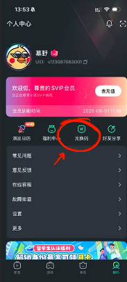 ③到【我的】-【兑换码】输入【DUYN】领取会员
