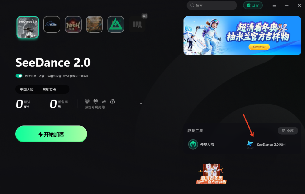 打开Sixfast,在首页搜索栏输入“seedance2.0”,找到对应加速节点