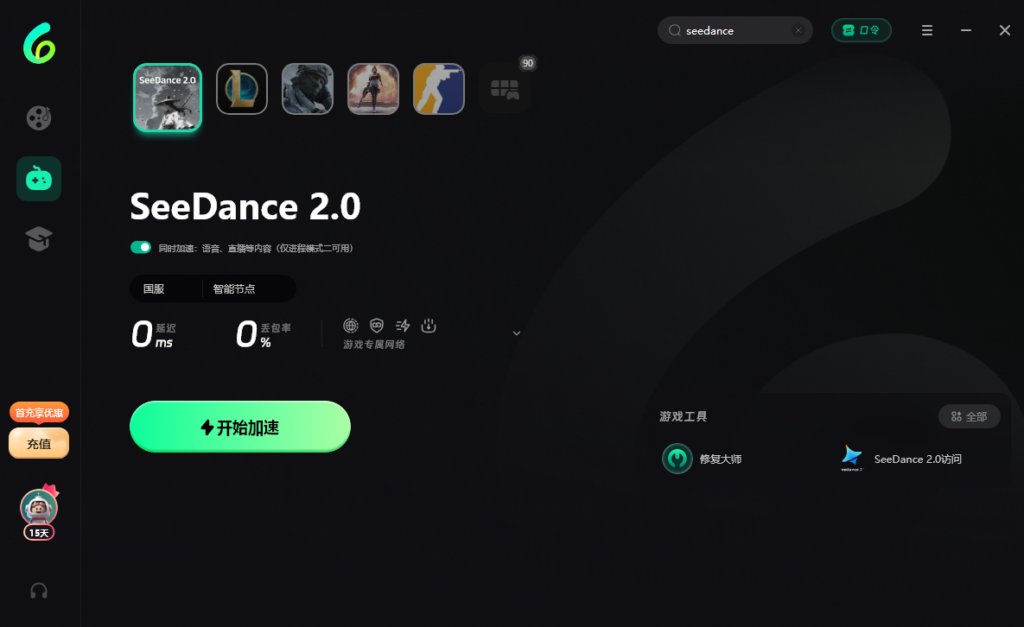搜索 “Seedance2.0” 一键加速,加速后打开应用即可正常创作