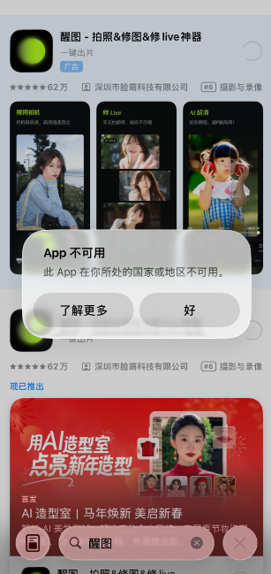 - 打开咪咕视频、央视频等直播平台,提示“该内容在您所在地区不可观看”,无法解锁任何场次直播