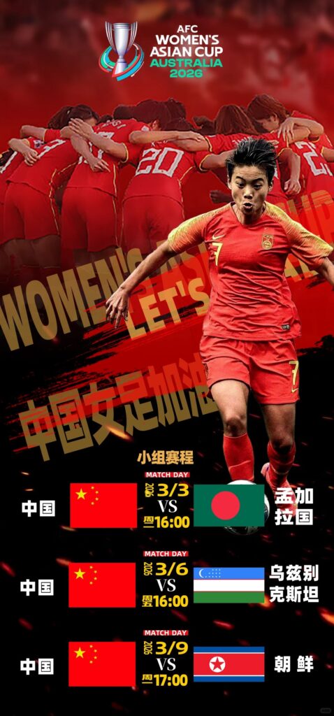 2026 女足亚洲杯正赛于 3 月 1 日在澳大利亚正式开打,作为卫冕冠军的中国女足,将在3 月 3 日 16:00迎来小组赛 B 组的首场较量,对手是首次晋级亚洲杯正赛的孟加拉女足。本场比赛不仅关系到中国女足的卫冕开门红,更直接影响小组排名与净胜球积累,央视 CCTV5 将从 15:50 起全程直播,爱奇艺体育同步转播,全国球迷可共同见证铿锵玫瑰的亮相时刻。