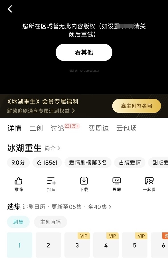 电视剧冰湖重生将于北京时间4月8日正式开播,但是海外观众在收看这部电视剧的时候,发现在播出的平台出现了无法观看的问题