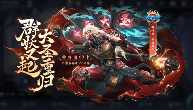 其中1月21日-1月27日,首周价格为1430点券,首周结束后价格为1788点券,购买好运60卡的玩家,可以领取价值358点券【孙悟空·齐天大圣】皮肤的超值专属优惠券