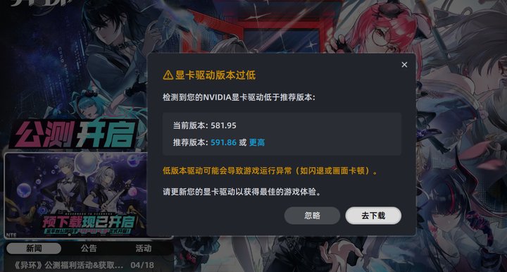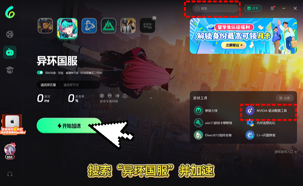 - 在工具列表中找到“NVIDIA 驱动配置更新工具”,一键检测并自动更新到适配《异环》的驱动版本,更新完成后重启电脑。