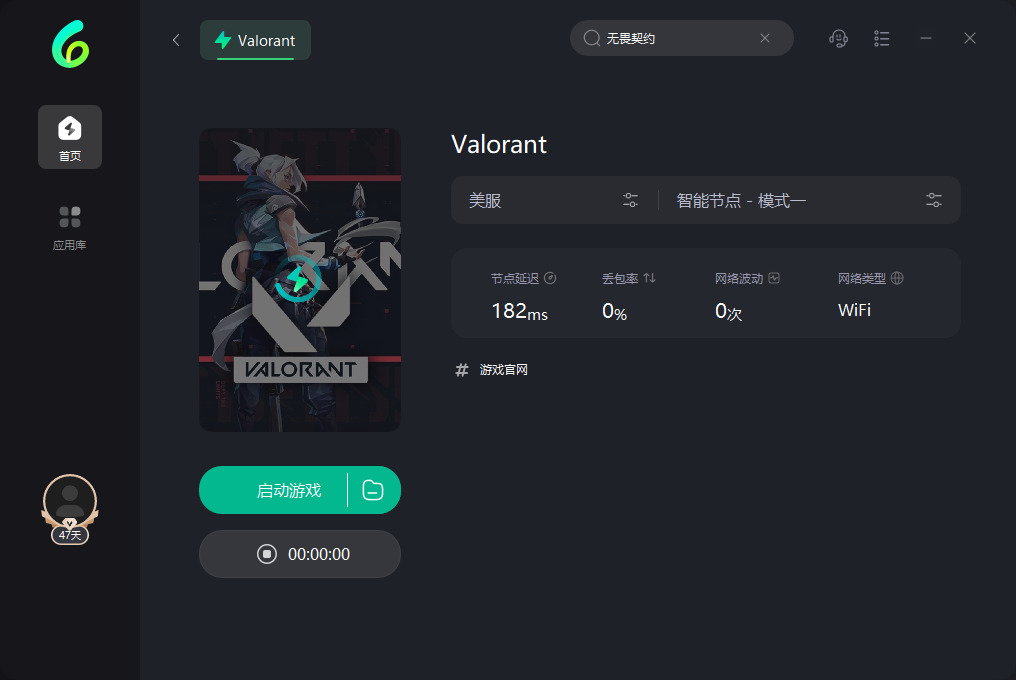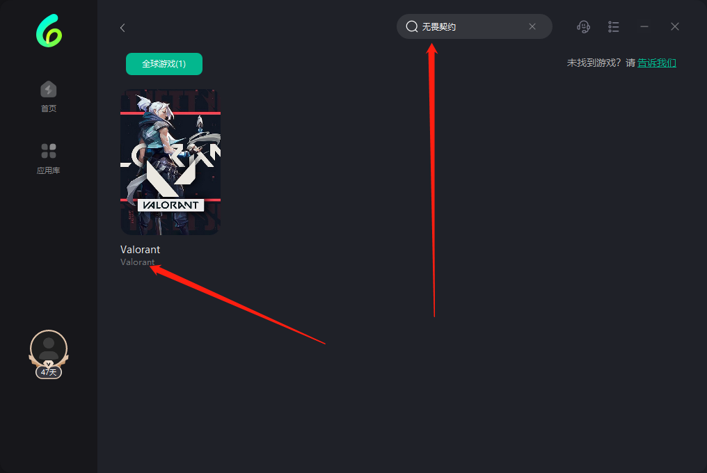 随后,在加速器内搜索无畏契约,找到游戏并开始加速即可,