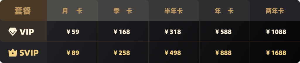 3、SVIP会员价格表